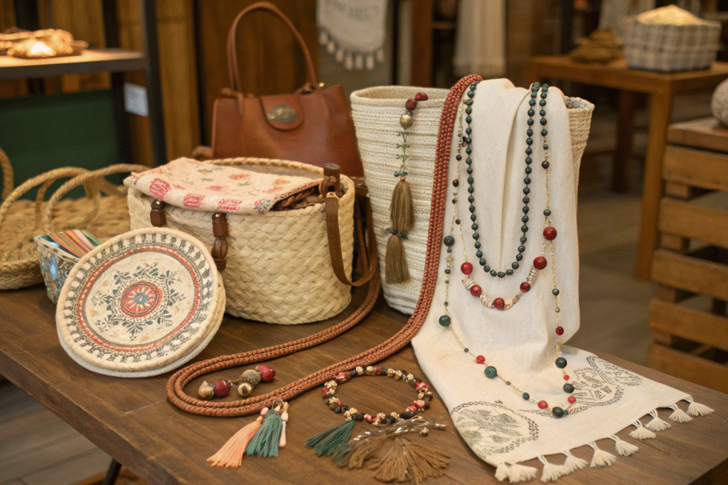 Leather and straw add structure and a handcrafted feel to bohemian products. Leather brings durability and a sense of rugged luxury to belts and bags. It ages beautifully, telling a story with each wear. Straw, on the other hand, is lightweight and rustic, perfect for hats and bags that need to hold a shape while maintaining a casual vibe. The combination of these materials—like a leather strap on a straw bag—creates a rich, layered look. We work with trusted tanneries and weavers to ensure the materials we use are of the highest grade and ethically sourced.