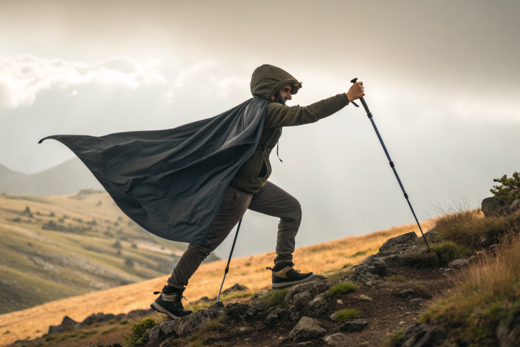 What is the main advantage of a cape over a jacket? It's unrestricted freedom of movement for your arms. This is a huge benefit for activities like hiking with trekking poles, cycling, or even just reaching into your pockets. The design of the cape must lean into this advantage.