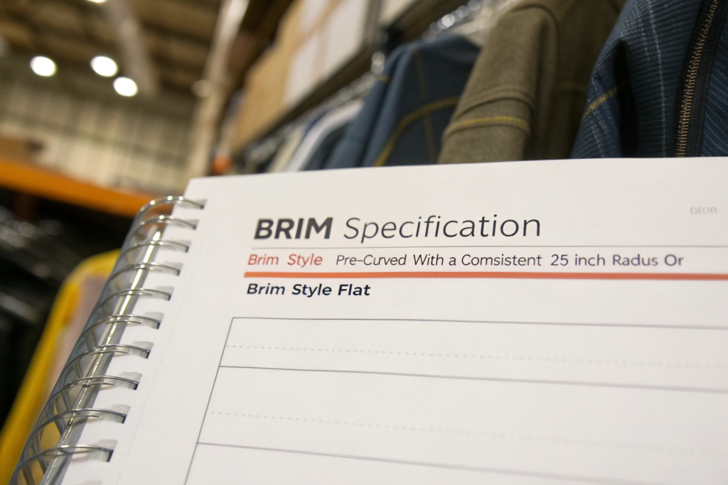 To avoid any confusion and ensure you receive exactly what you expect, the brim shape must be explicitly and clearly stated in your purchase order and tech pack. Vague language like "normal brim" or "standard shape" is an invitation for misinterpretation. Your specification should be unambiguous. For a flat brim, the spec should state: "Brim Style: Flat. Brim must be rigid and perfectly horizontal with no curvature." For a curved brim, the spec should state: "Brim Style: Pre-Curved. Brim to have a consistent, smooth curve. (Optional: Specify approximate radius or provide a reference photo of the desired curvature)." Providing a reference photo of a cap with the exact brim shape you want is always a best practice. This precise language for specifying flat or curved brims in purchase orders ensures clear communication.