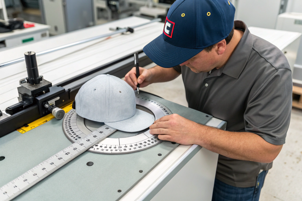 Whether the order is for 5,000 flat brim caps or 5,000 curved brim caps, consistency is paramount. A customer who receives a cap with a lopsided, uneven, or incorrectly angled brim will be dissatisfied. The key to consistency is tooling and process control. For flat brims, the large heated press ensures that every single brim is subjected to the exact same pressure and temperature, resulting in a perfectly uniform flat shape. For curved brims, we use precision-machined metal molds in our heated press. The cap brim is clamped into this mold. The heat and pressure set the curve to the exact, repeatable specification. We also use brim shape checking fixtures. These are simple go/no-go gauges. A finished cap is placed in the fixture. If the brim curve matches the template, it passes. This is a fast, objective quality check that is performed on a sample of caps from every production run. This using heated molds and checking fixtures to ensure consistent brim curvature is our standard for quality.