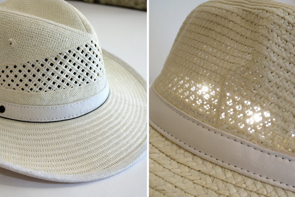 - Crown & Top Brim: Classic, tightly woven Toyo straw. High UPF. Elegant silhouette.