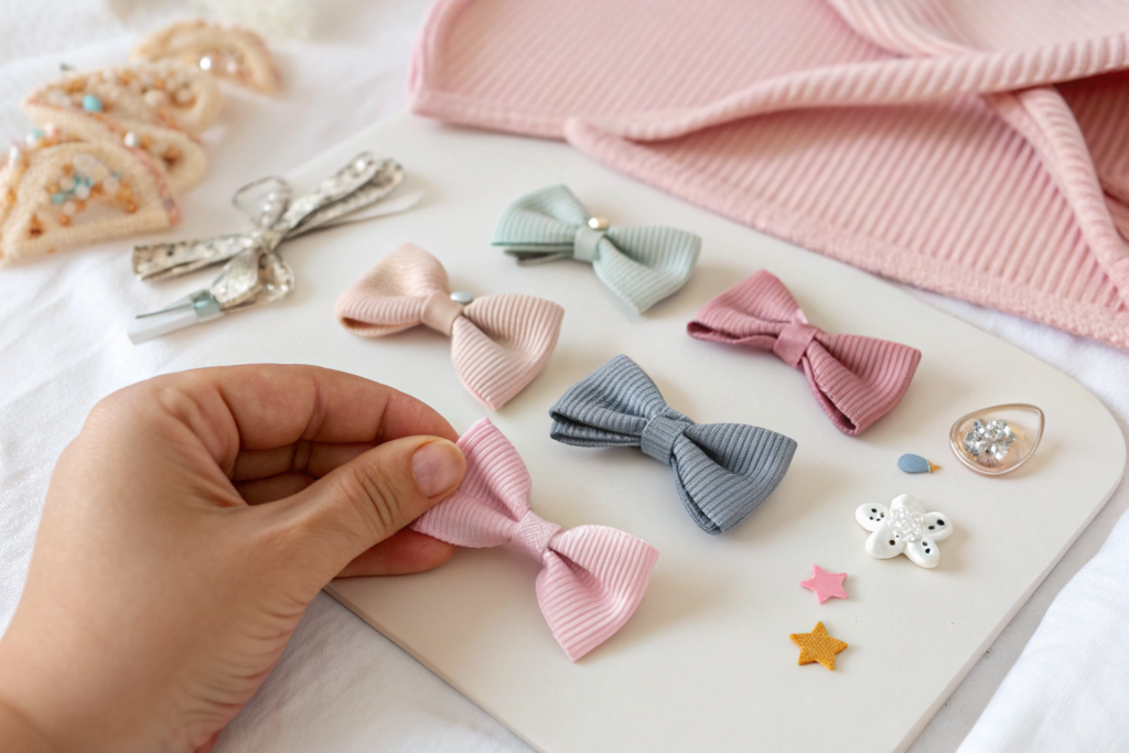 This method ensures that the bow cannot be pulled off without breaking the nylon thread. And nylon thread has a tensile strength far exceeding 15 pounds. It is labor-intensive. It costs more than a dab of hot glue. But it is safe. It is durable. And it gives parents confidence that the hair accessory will survive the toddler years.