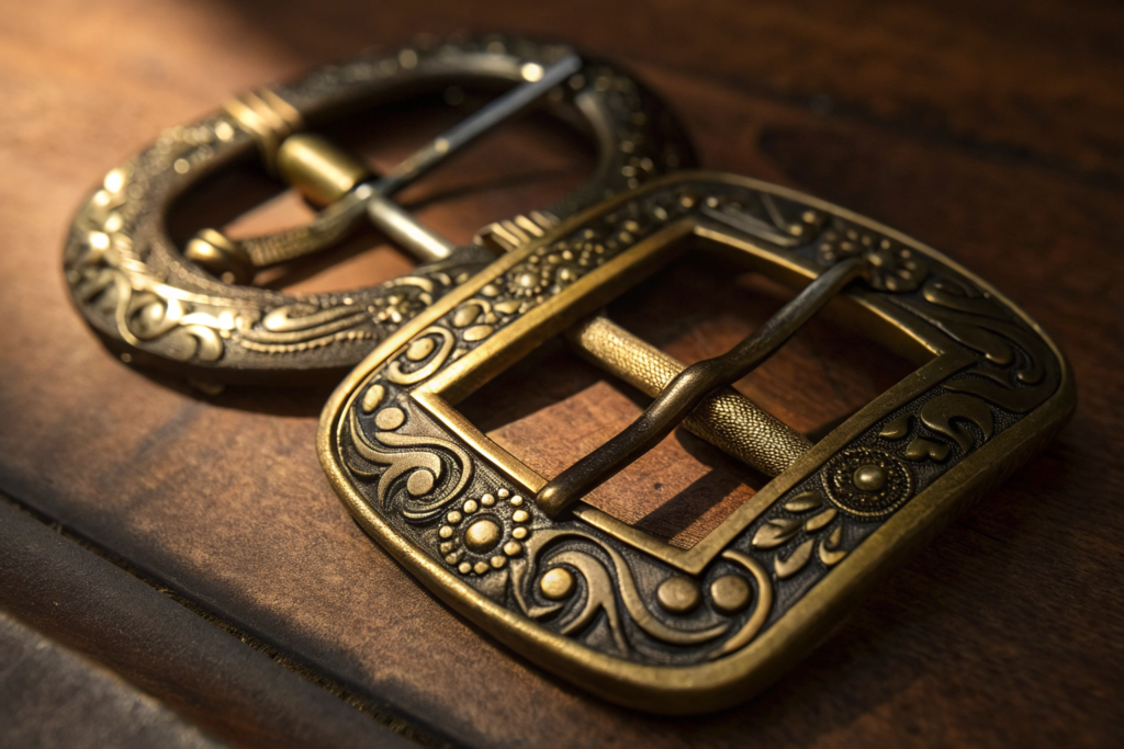 The buckle is the soul of a vintage belt. It is often the most complex and challenging element to replicate. A vintage buckle might be Stamped, Cast, Engraved, or Etched. Each original manufacturing method leaves a distinct "fingerprint," and we can replicate them all. The finish is just as important as the shape. A perfect shape with a flat, modern gold plating will look like a cheap costume piece. The Patina is the secret.
