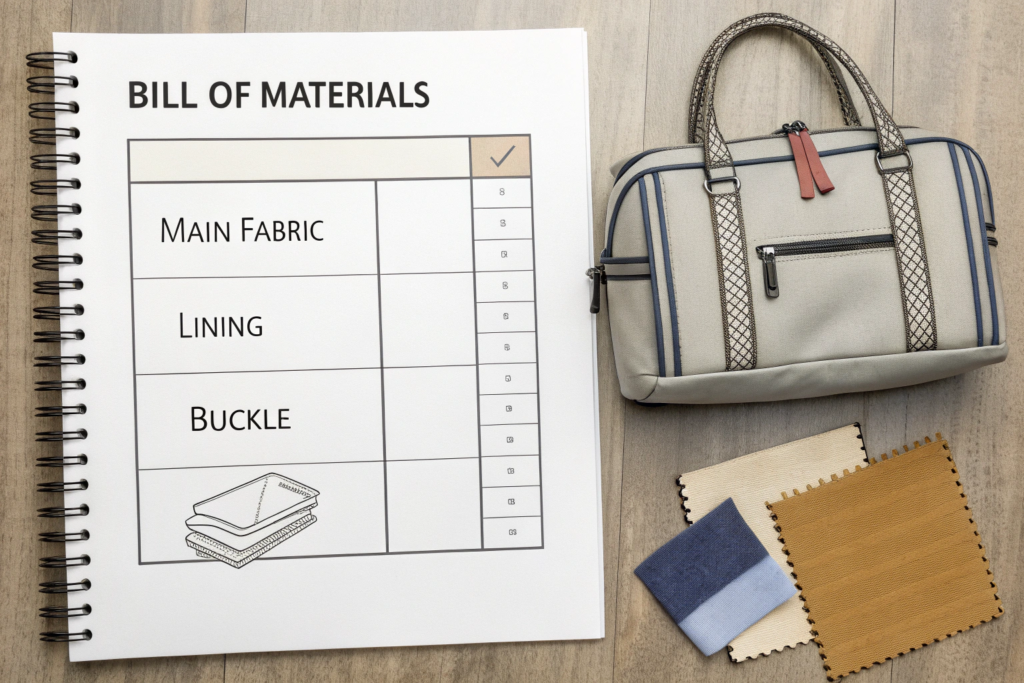 What is the "ingredient list" for your bag? It's the Bill of Materials, or BOM. This is a detailed, itemized list of every single physical component required to build your bag. This section of the tech pack is critical for my sourcing team to find the exact materials you want and for calculating an accurate price.