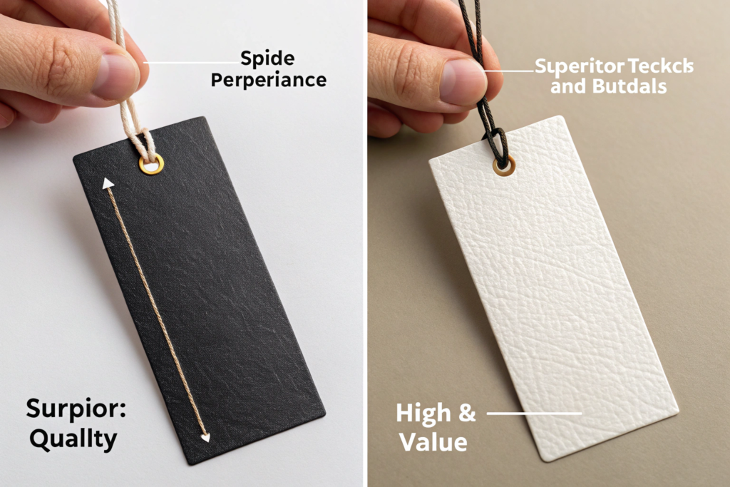 The material of the tag should feel like it's worth at least 10% of the product's price. If you are selling a $50 belt, the hang tag should feel like a $5 piece of art.