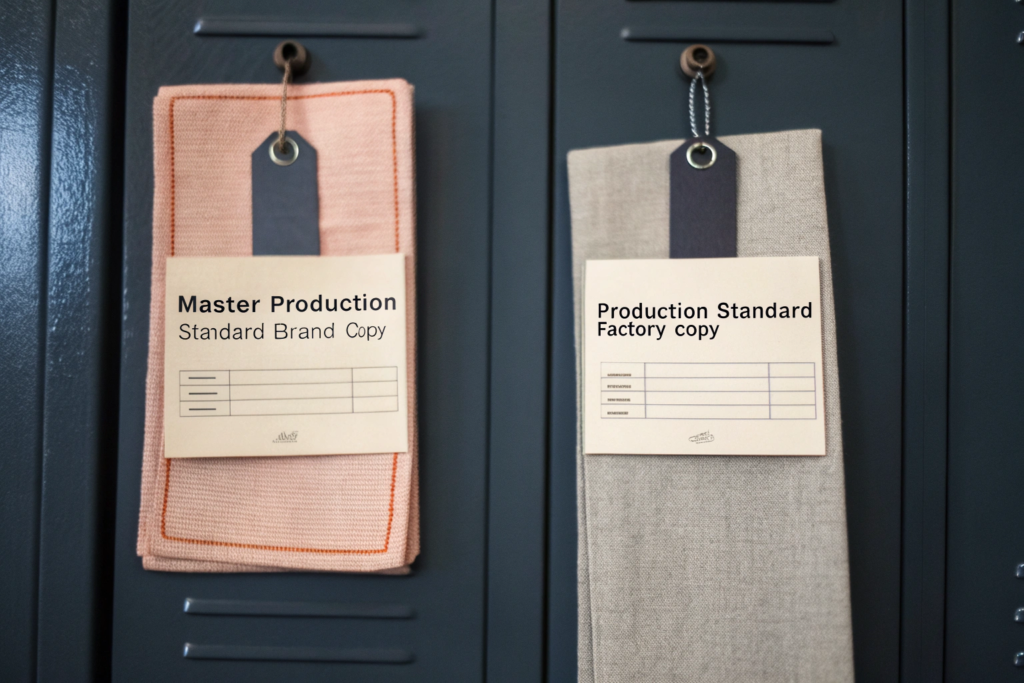 A Production Standard is a larger piece of fabric (e.g., 1 meter) taken from your first successful bulk production run. You and your factory both sign and date it.