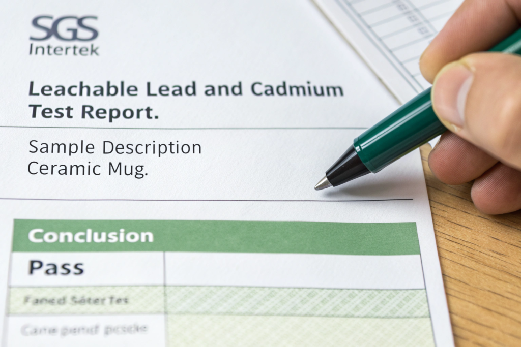 - Look at the "Test Requested" Section: Does it state that they tested for leachable lead and cadmium according to the correct standard (e.g., FDA CPG 7117.07 or EU 84/500/EEC)?