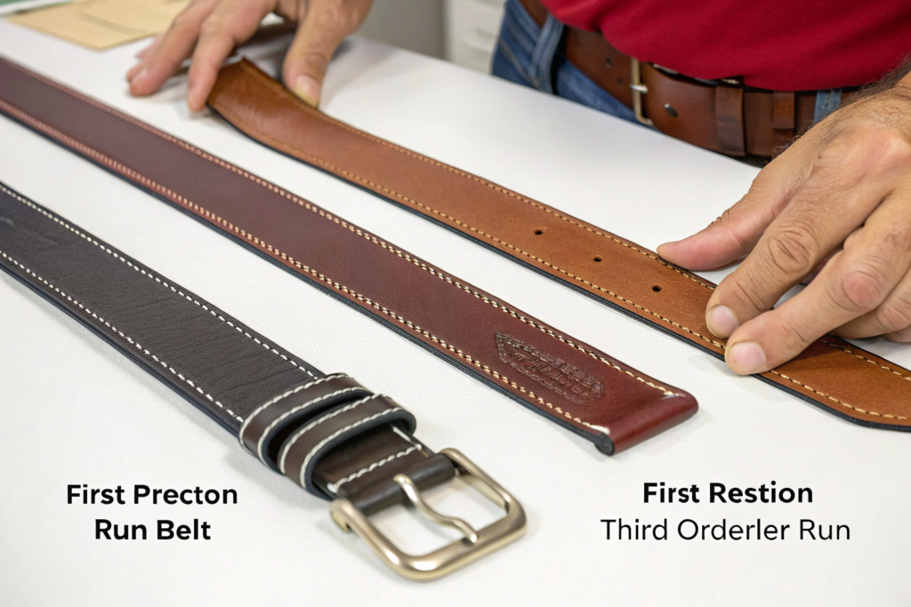 For a belt program, the critical materials are the specific leather hide and the custom buckle. The leather is a natural material with batch-to-batch variation. The buckle is a custom metal component with a multi-week lead time. If the factory does not hold these in stock, every reorder triggers a new sourcing and production cycle.