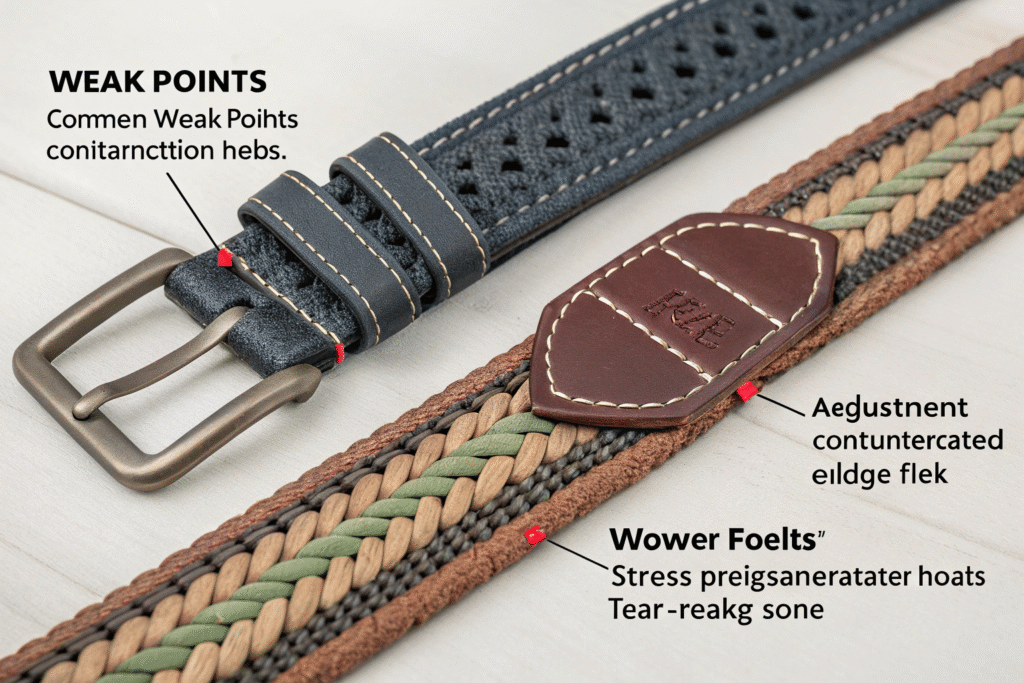Primary failure points include buckle attachment areas, adjustment holes, edge fraying points, and stress concentration zones. At AceAccessory, our design process specifically addresses these vulnerabilities through reinforced construction, material selection, and strategic reinforcement that prevents premature failure.