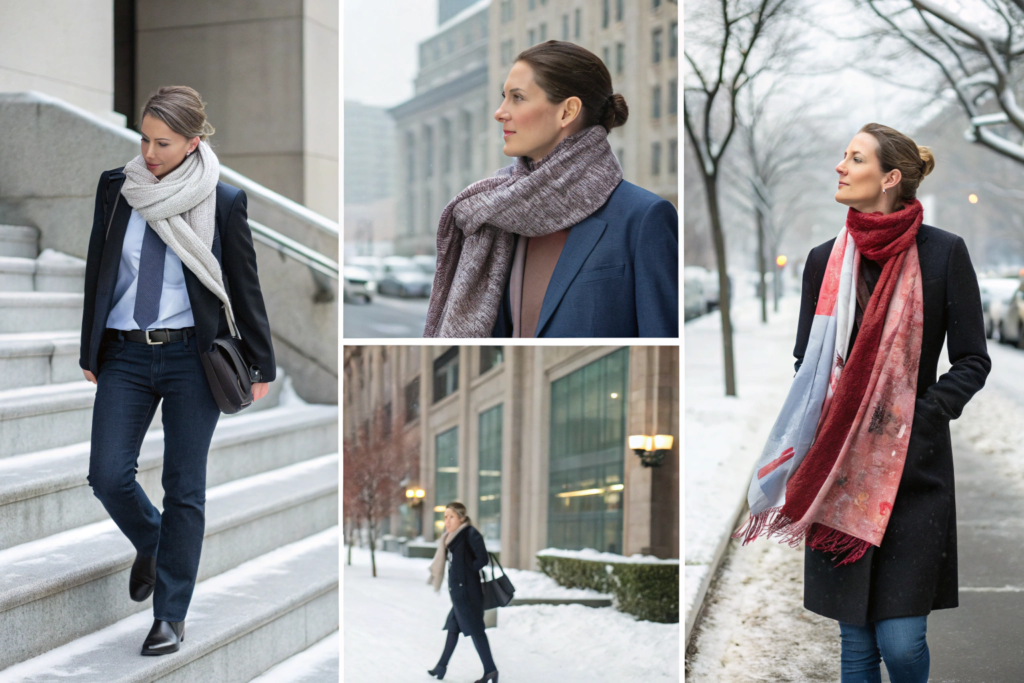 Mid-weight scarves (150-250 gsm) transition across seasons. They provide warmth on cool days without bulk. Worsted wools, medium-weight cottons, and modal blends occupy this range. Heavy scarves (300+ gsm) provide serious winter warmth. Chunky knits, thick wools, and fleece fabrics protect against cold. Fabric weight standards provide measurement methods.