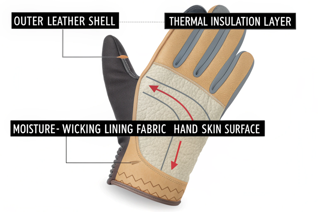 If thermal insulation is about keeping heat in, moisture management is about keeping sweat out. A hand that is wet, even from perspiration, loses heat up to 25 times faster than a dry hand. Therefore, a lining that retains moisture guarantees cold hands, regardless of insulation. Effective linings use hydrophilic (water-attracting) or capillary action principles.