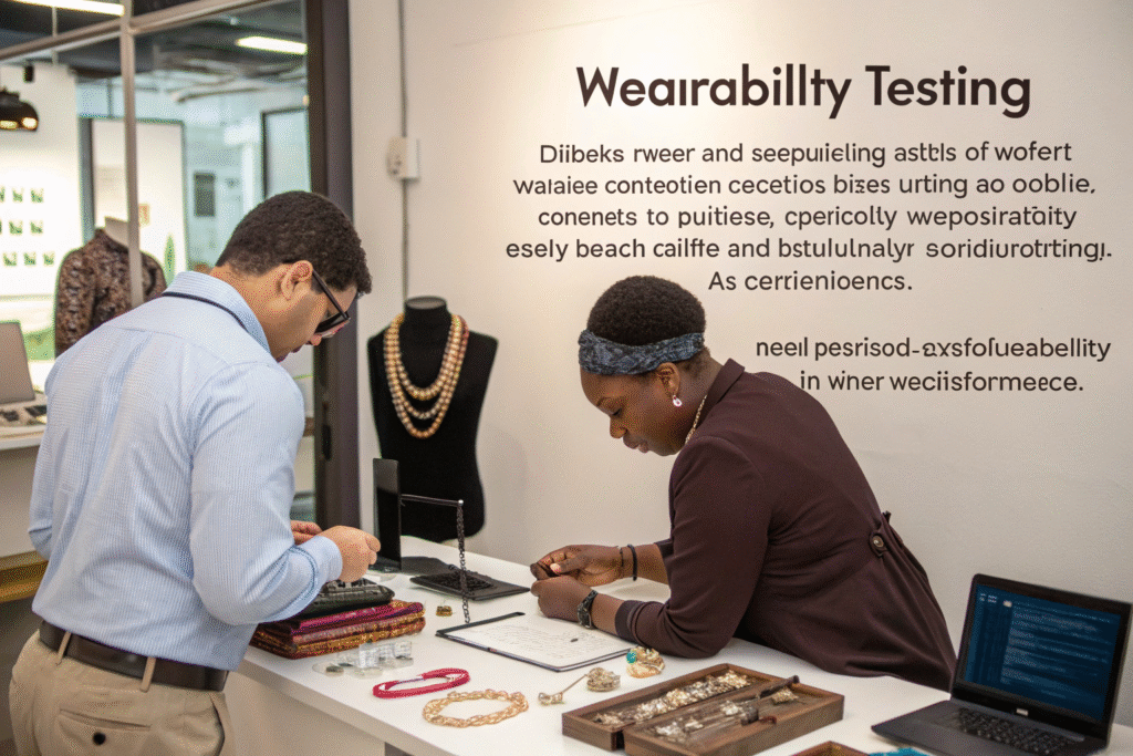Our wearability testing involves both technical measurements and real-world trials, with testers providing feedback on comfort, functionality, and practical issues across various wearing scenarios.