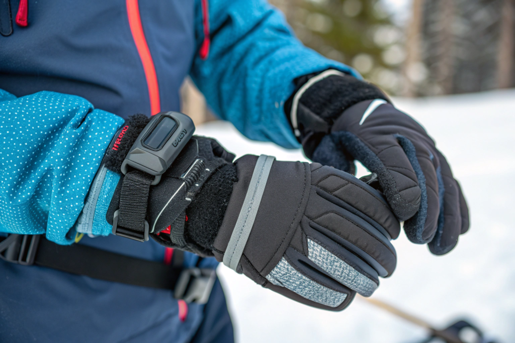 For high-performance winter sports gloves, the answer is almost always a hook and loop strap, often combined with an elasticized inner cuff.