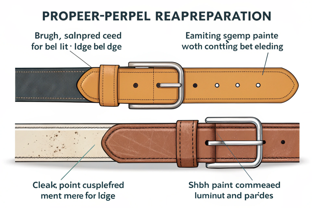 First, the cut belt blank must have its edges skived or beveled. This means shaving the top and bottom corners of the edge at a 45-degree angle, creating a slight rounded profile rather than a sharp 90-degree corner. This bevel does two things: it removes the weak, fibrous "feather" edge of the leather or PU, and it provides a larger surface area for the paint to grip.