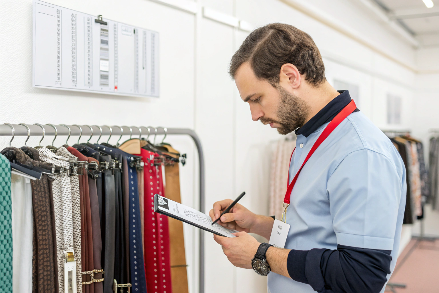 • Tagging: All required tags present, correctly positioned, with accurate and legible information (price, SKU, fiber content).