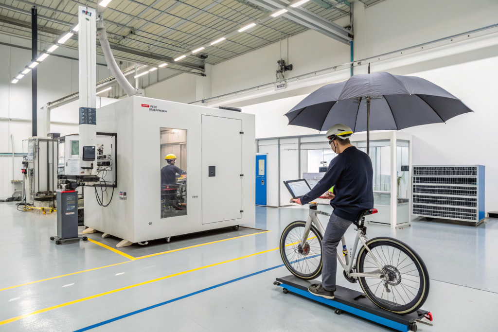 2. Cycle Endurance Test: A machine repeatedly opens and closes the umbrella to simulate years of use, checking for mechanism wear, joint fatigue, and canopy attachment integrity.