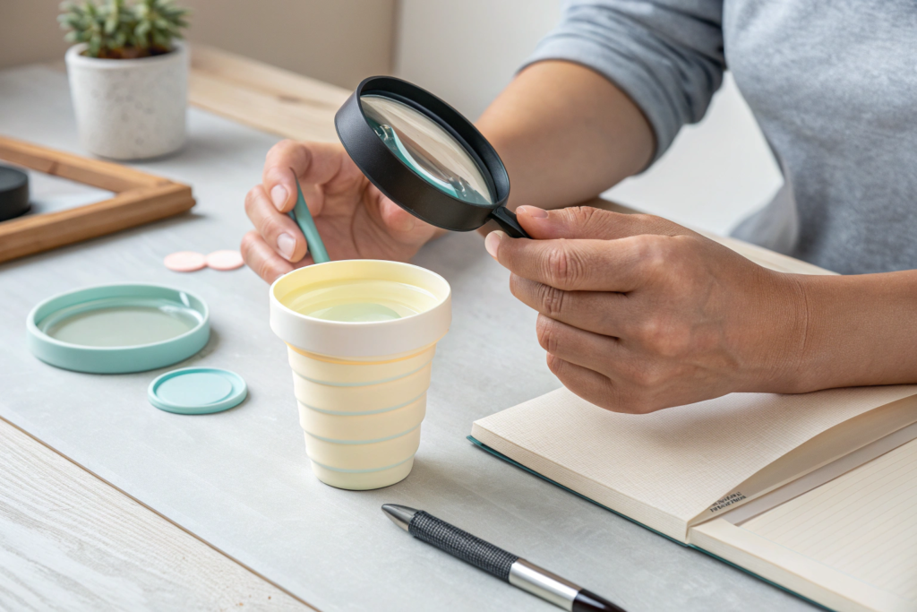 When your sample arrives, put it through rigorous testing that mimics real-world use. First, check the basics: Is the material (likely food-grade silicone) odorless and free of blemishes? Does the cup expand and collapse smoothly? Perform a leak test by filling it with water, securing the lid, and shaking it vigorously. To test for durability, collapse and expand it repeatedly—at least 50 times—to check for stress marks on the fold lines. For heat resistance, pour boiling water into it and see if the cup becomes too hot to hold or loses its structural integrity. As a manufacturer like Shanghai Fumao Clothing, we know these simple tests can quickly reveal the quality of the silicone and the mold.