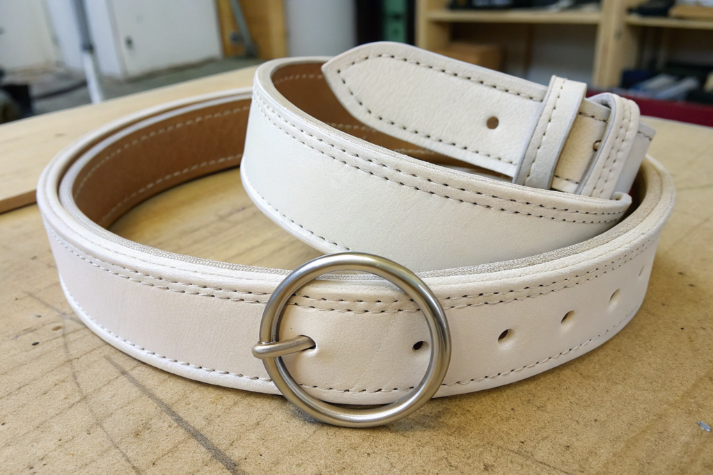 The double-ring belt is all about the minimalist aesthetic. There is no buckle to hide behind. The folded and stitched end of the belt is highly visible. The finish on this end must be impeccable. A ragged cut, uneven stitching, or a bulky profile will ruin the clean, modern look.