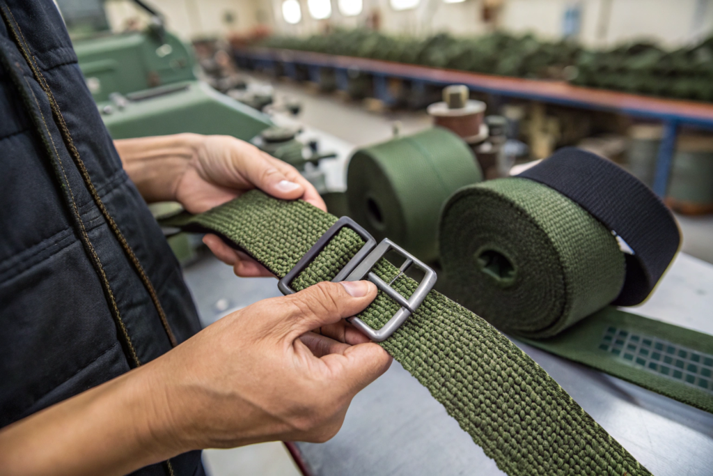I received an inquiry two months ago that stood out from the usual fashion requests. A buyer named James from Texas emailed me. He was not looking for a trendy skinny belt for a boutique. He was looking for something that could hold up a tool pouch on a job site. He wanted "military-style webbing belts." He sent over a picture of a thick, olive drab belt with a heavy metal buckle. He said, "I need this to be strong. It can't fray. The buckle can't snap. My customers work in construction and outdoors. They will destroy a cheap belt in a week." I looked at the spec. This was not a standard fashion accessory. This was a piece of utility gear. The production process, the materials, and the quality standards were different.