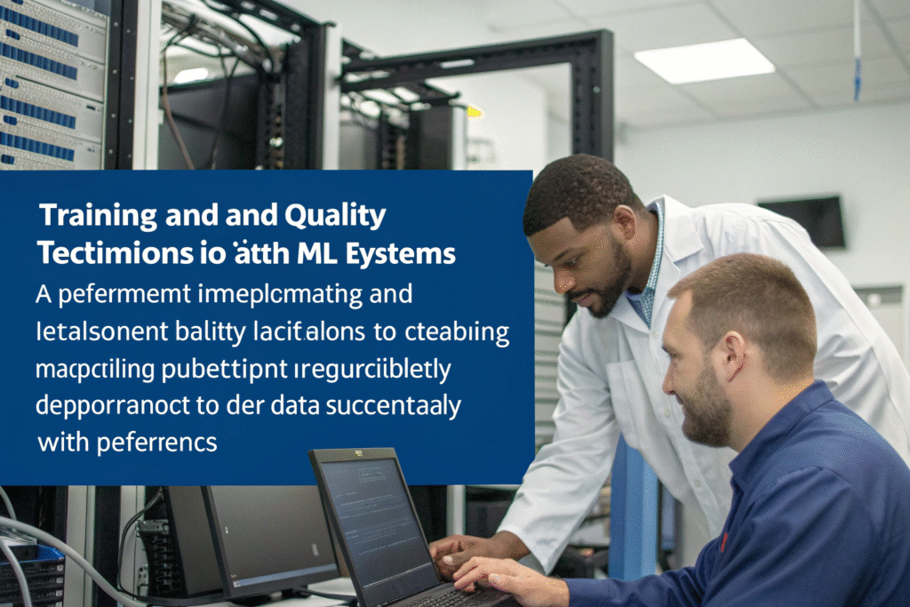 Implementing ML systems involves hardware setup, software integration, workflow adaptation, personnel training, and performance monitoring to ensure effective deployment in live production environments.