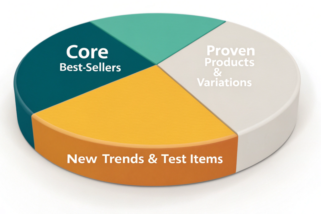 You have your total buying budget: $72,000. Now, how do you spend it? You don't simply divide it equally among all the products you want to make. A smart buyer allocates their budget strategically, balancing proven sellers with new, exciting products to test.