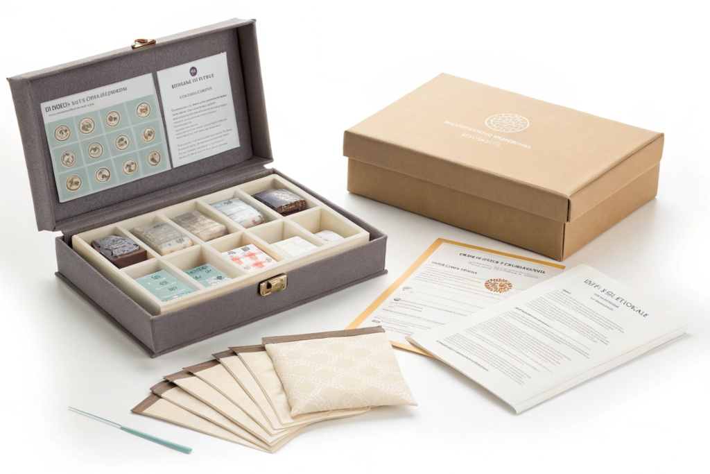 - Foam or Cardboard Inserts: For kits with many small parts, a foam or cardboard insert with cut-out compartments can keep everything neatly in place and visible. This creates a very premium, professional look.
