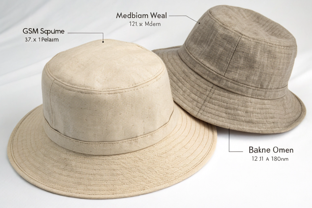 The same high-quality linen yarn can be woven in different ways, resulting in fabrics with very different properties. For a hat, the weave and weight determine its structure, breathability, and how well it will hold its shape.