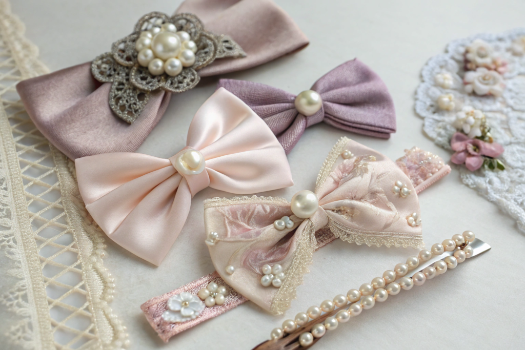 To source trendy hair clips for the Coquette aesthetic, you need a manufacturer who understands the core design elements: bows, pearls, ribbons, floral motifs, and soft, muted color palettes like blush, cream, and powder blue. It requires a partner who can work with delicate materials like satin, velvet, and acetate, and who can execute fine details like intricate glue work for pearls or precise pleating for ribbon bows.