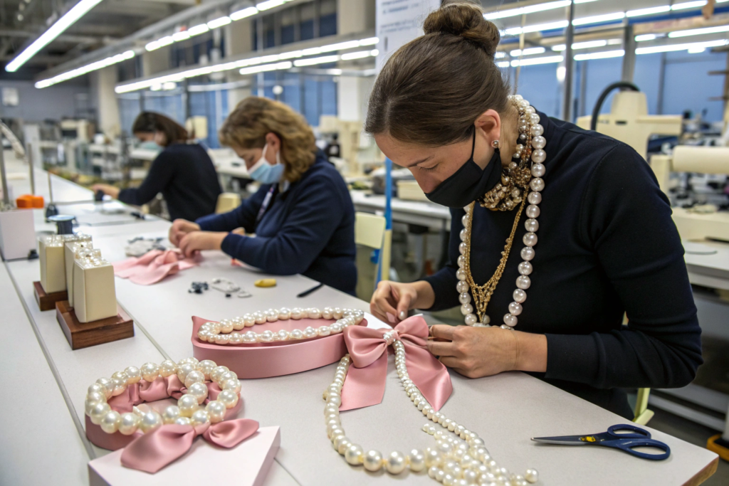 You need a factory with a strong in-house design team that actively follows fashion trends. They should be able to show you examples of similar work they have done, perhaps for other feminine or decorative accessory lines. You also need a factory with skilled artisans, not just machine operators. The hand-gluing of pearls, the precise tying of small satin bows, and the careful wrapping of ribbon around a clip base are skills that require experienced hands.