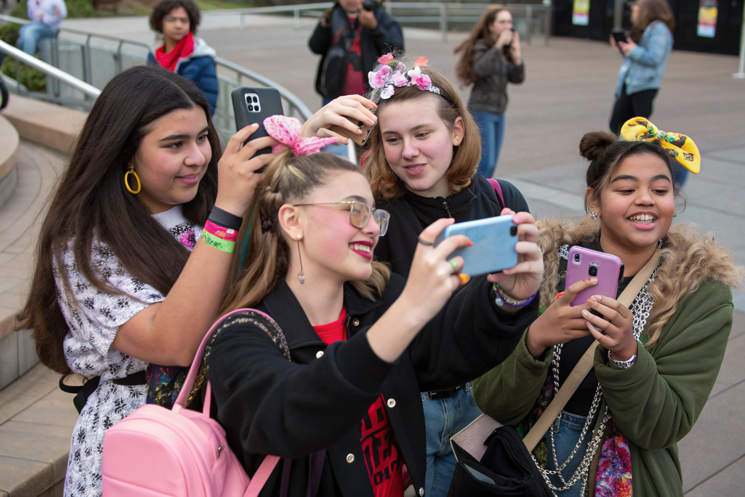Fashion Influencer Wearing Silk Scarf Taking Selfie