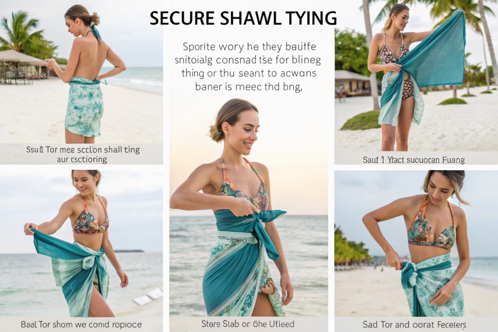 Security is the primary concern when wearing a shawl as a beach cover-up, particularly in breezy coastal conditions. The right tying methods ensure your cover-up stays in place during movement while remaining comfortable for extended wear.