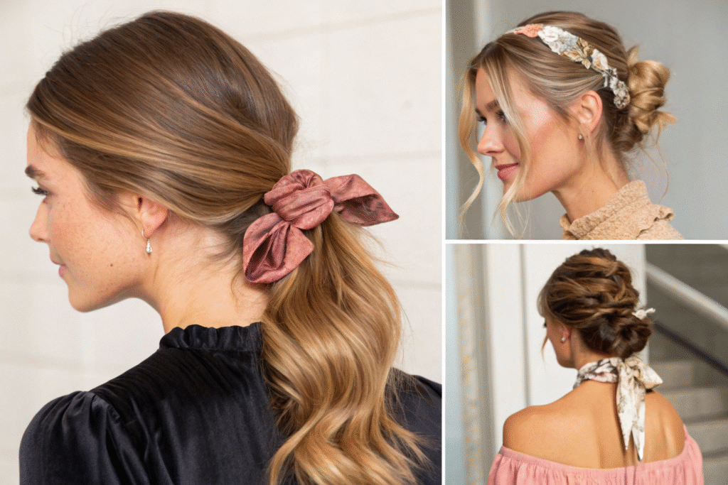 Dating/parties: Try champagne-colored scrunchies with warm undertones to complement light-colored knitwear or dark dresses, or fluorescent pink/orange for a bold statement (pair with neutral denim or white basics to avoid clutter).