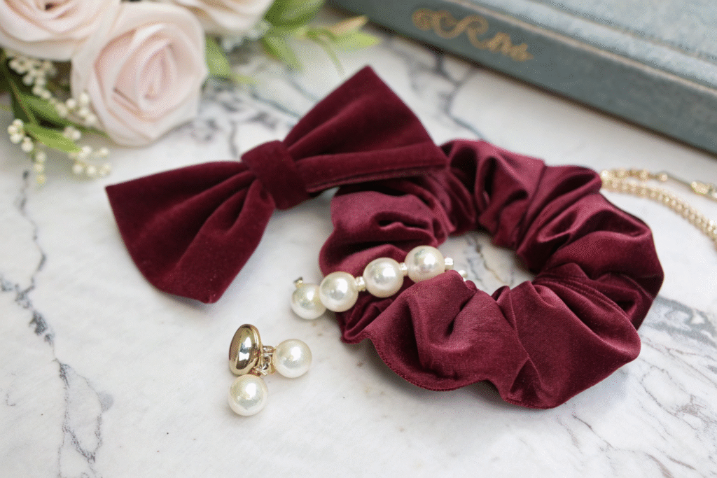 High-end scrunchies differ significantly from ordinary ones in fabric. For a refined look, choose silk satin (used by luxury brands) instead of polyester satin for budget options. For autumn and winter, medium-weight non-stretchy velvet works well; for a translucent textured style, pick silk organza. For daily use, 100% organic cotton is ideal as it is breathable and hypoallergenic, though it needs pre-washing to prevent shrinkage.