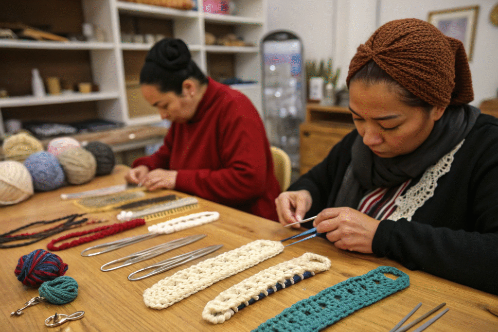 The production of hand-knitted hair clips requires specific artisan skills that combine traditional techniques with contemporary fashion sensibilities. Understanding these requirements helps in developing effective training and employment structures.