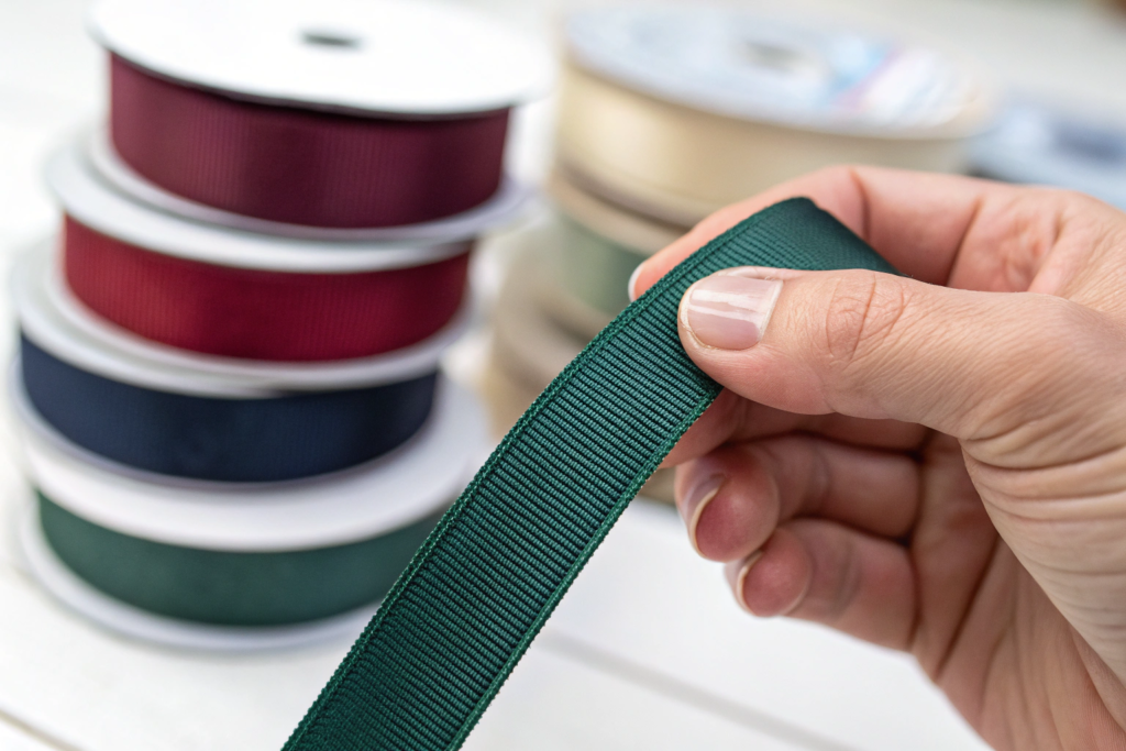 Grosgrain is the gold standard for school ribbons because of its ribbed texture and stiffness. But a raw grosgrain edge is a fraying nightmare. The moment you cut it, the horizontal ribs start to separate from the selvage. Within a week in a child's hair, it looks like a ragged piece of string.