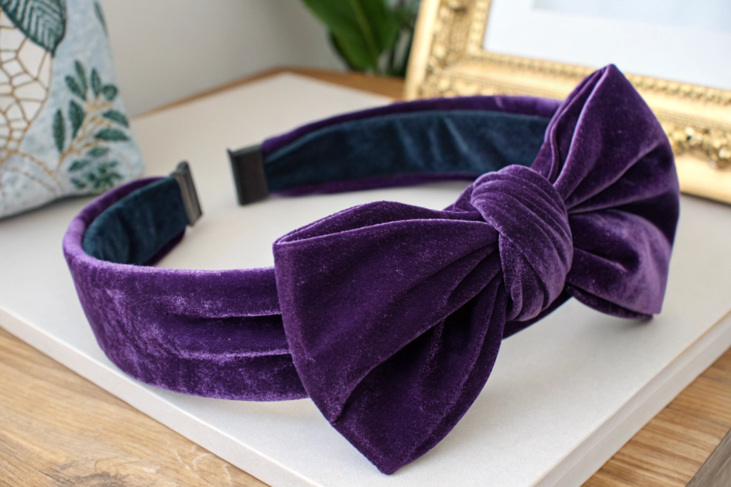 A cheap bow will flop and look sad. A quality bow requires internal structure. We use a lightweight interfacing or a thin layer of foam inside the velvet fabric to give the bow its beautiful, sculptural volume. The attachment to the headband must be secure so the bow does not wobble or detach. The headband itself is typically a slim, flexible band wrapped in the same velvet or a complementary satin. This internal construction for voluminous and durable fashion bow headbands is what separates a premium accessory from a disposable one.