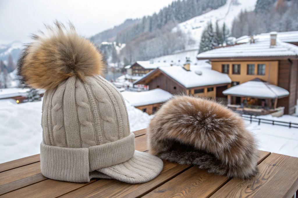 The second major trend is all about après-ski luxury and unapologetic coziness. This is the hat you put on when you pop off your helmet and head to the fireside bar. The two key silhouettes in this category are the beanie crowned with a statement faux fur pom-pom and the classic trapper hat. The faux fur pom-pom has evolved. It's larger, fluffier, and more luxurious than ever. We're seeing multi-toned faux furs that mimic natural lynx or fox, as well as bold, solid colors. The trapper hat, with its distinctive ear flaps, is also experiencing a major revival, rendered in plush faux fur or soft, textured bouclé. This is not performance gear. It's pure, indulgent, cozy style. This luxurious faux fur pom pom beanies and trapper hats for apres ski 2026 is the trend for off-mountain moments.