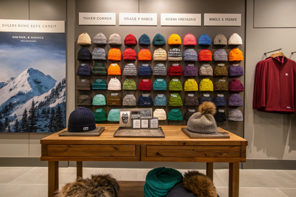 For the sleek merino hats, the benefits are not always visually obvious. The sales staff and the point-of-sale signage must tell the story. Use small hang tags or shelf talkers that highlight key features: "Naturally Breathable Merino Wool," "Moisture-Wicking & Odor-Resistant," "Subtle Reflective Detail for Safety." Educating the customer on the "why" behind the price premium for merino is essential for converting sales. This communicating the technical benefits of performance ski hats at retail requires a bit of education.