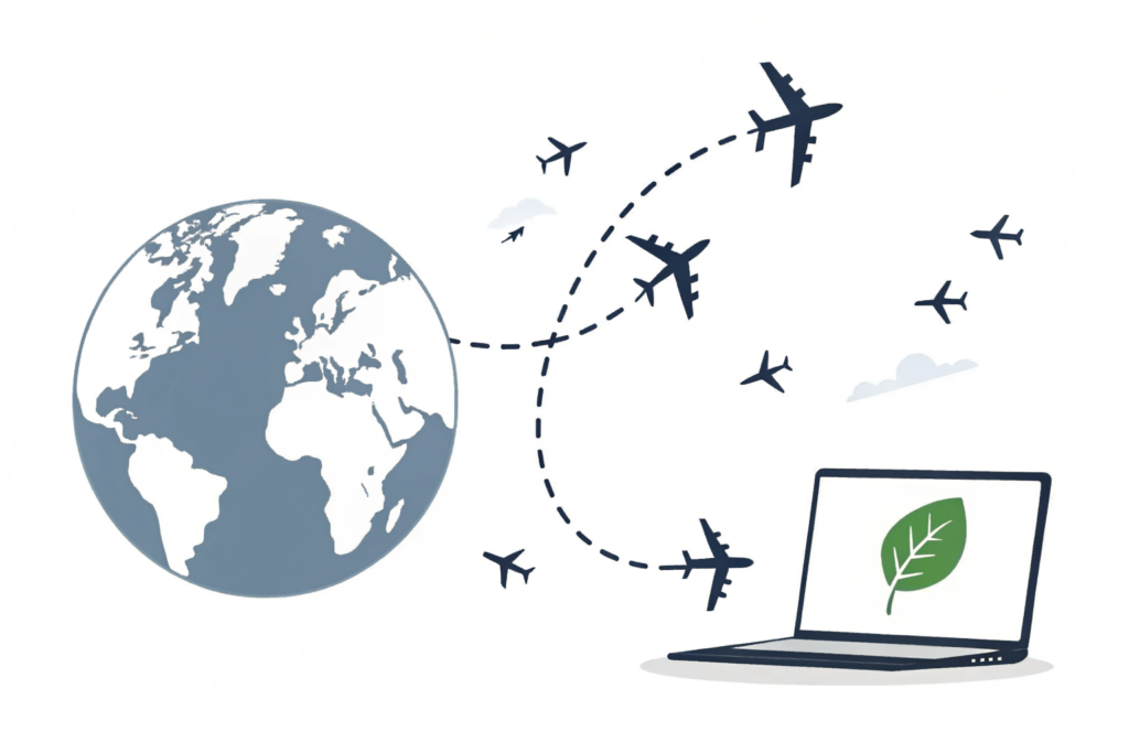 Your company has made a public commitment to reducing its carbon footprint. As a buyer, you are under pressure to align your sourcing practices with these corporate sustainability goals. The carbon emissions from frequent international flights for trade shows are a significant and highly visible part of your department's environmental impact. You need to find a way to source effectively while also being a good corporate citizen.