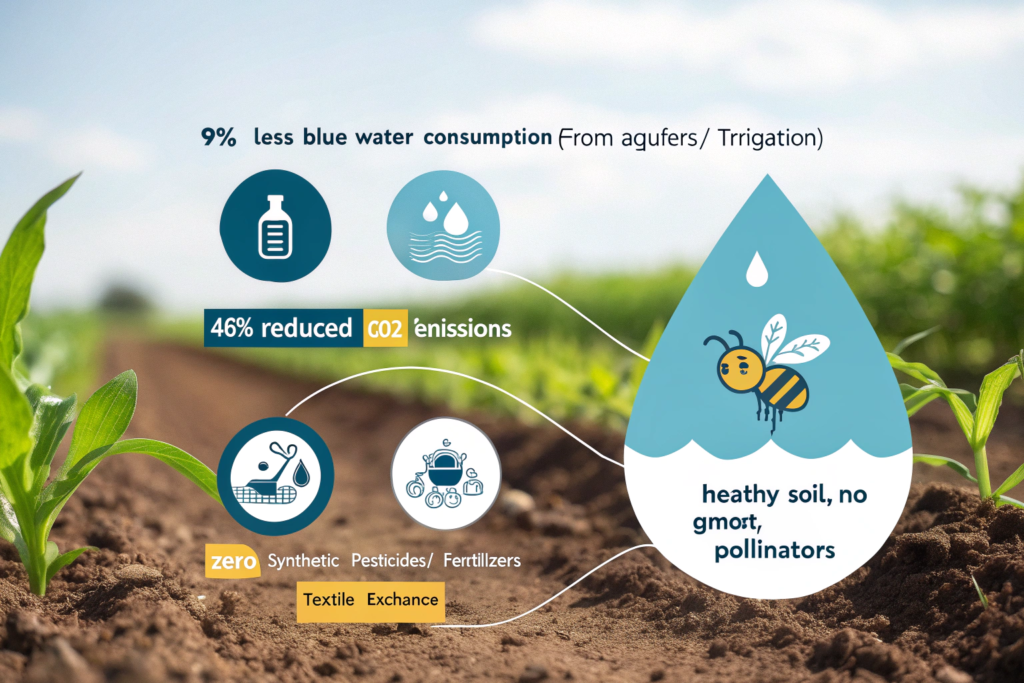- Water Conservation: Organic cotton primarily uses rainwater (green water) rather than irrigation (blue water). It improves soil structure, increasing its water-holding capacity. Studies by the Textile Exchange show it can reduce water consumption by over 90% compared to conventional cotton.