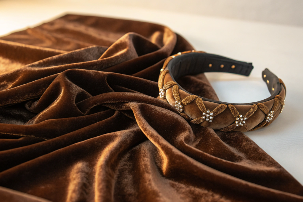 Polyester velvet is for headbands that need to be beautiful. It is plush. It is luxurious. It is stable. I have used it for holiday headbands and fashion lines. It adds a premium feel.