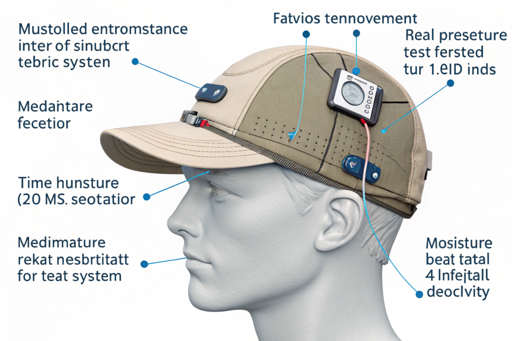 We test sweatband performance using a custom sweating head form. The head form is heated to 37°C. It is covered with a porous skin-like membrane. Artificial perspiration is pumped through the membrane at a controlled rate. The test hat is placed on the head form. Sensors measure temperature and humidity under the hat. Moisture sensors in the crown fabric detect any penetration. We run tests for 2 hours, simulating moderate activity. We measure the time to first moisture penetration and the total moisture absorbed by the crown. Materials that allow any crown moisture before 90 minutes are rejected. This is the most rigorous test in our quality system.