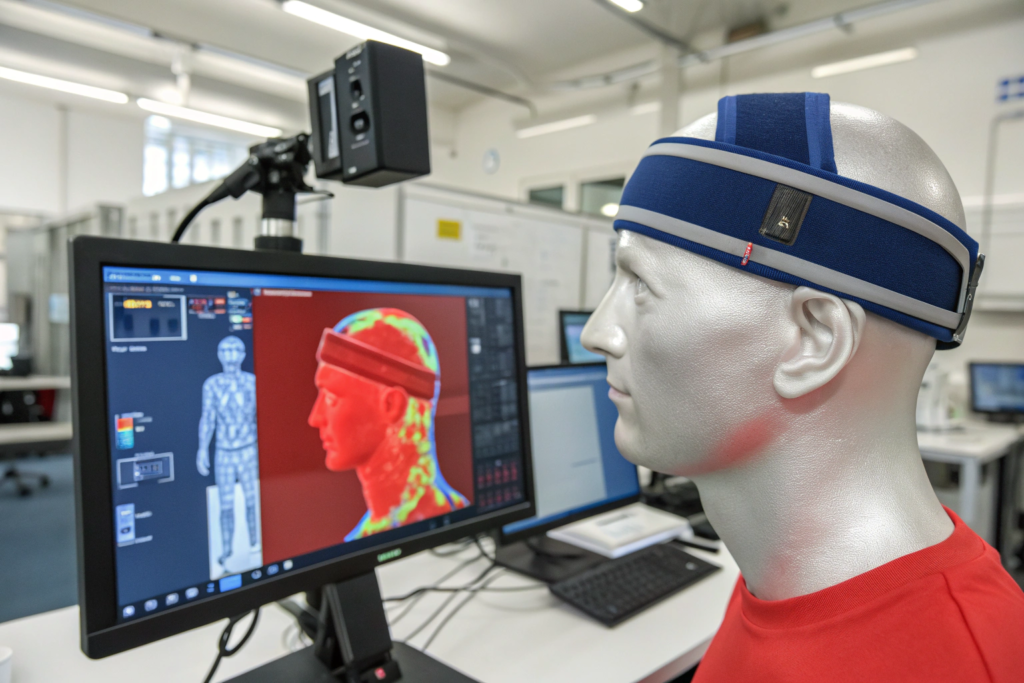 We use heated head forms that simulate skin temperature. Temperature sensors measure cooling at multiple points. Data logging records temperature over time, showing cooling curves and duration. Sweat simulation systems apply artificial sweat at controlled rates, mimicking real activity. These objective measurements quantify performance differences between materials and designs. ASTM thermal testing standards provide protocols we follow.