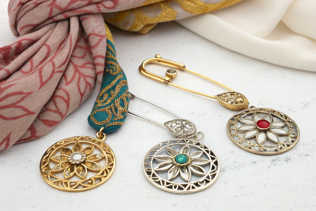 The pin mechanism is the most important part of a scarf brooch. A poorly designed pin can create large holes, snag threads, or even tear the fabric. The ideal pin is: