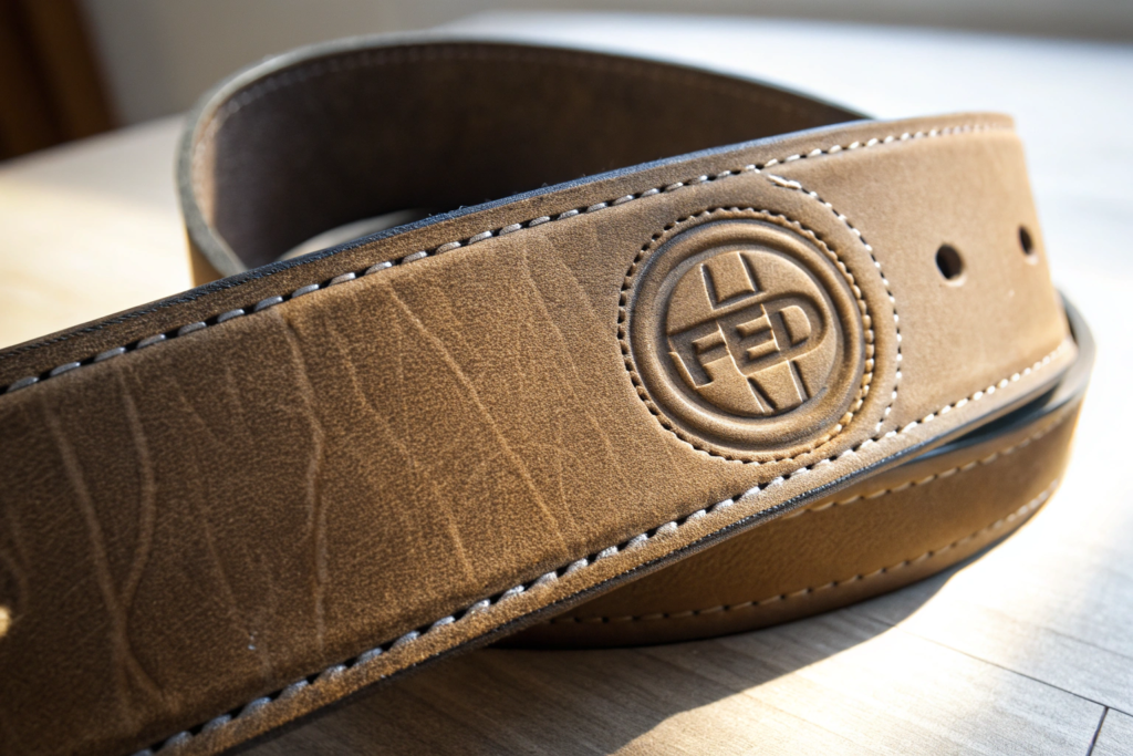 Debossing creates an indentation. The logo goes into the leather. Embossing creates a raised surface. The logo comes out of the leather. Debossing is more common for belts and small accessories. Embossing is often used for book covers and larger items. For most accessories, debossing is the best choice.
