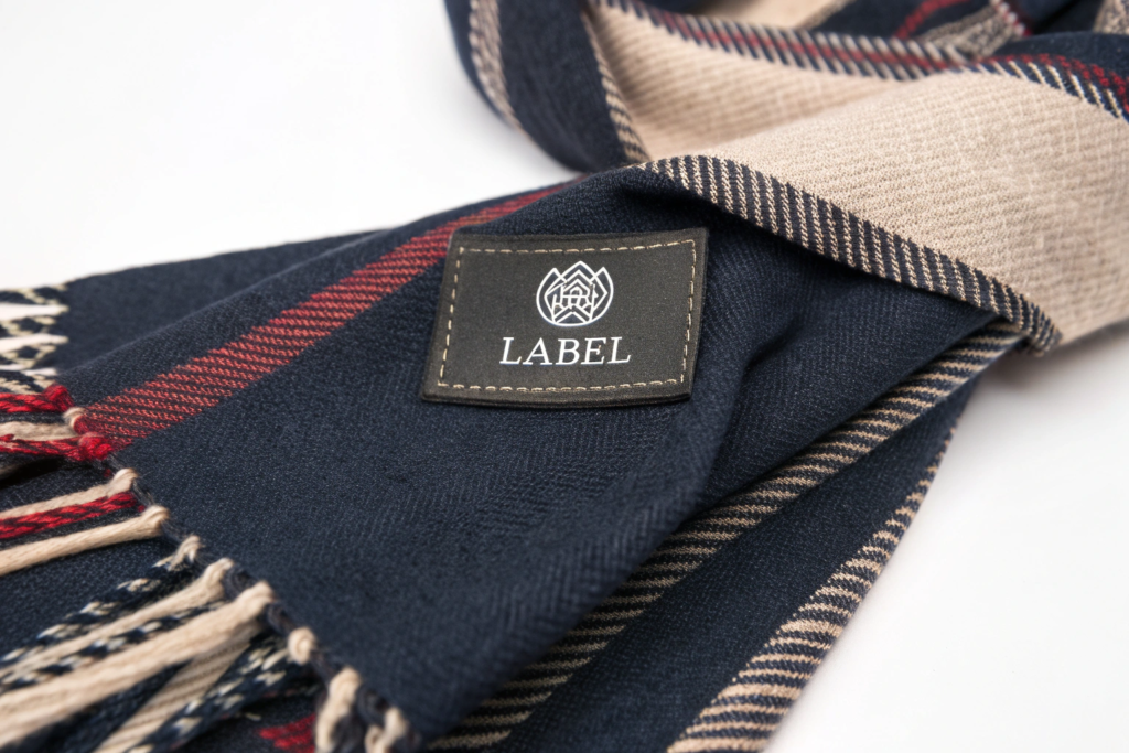 For scarves, place the label in the corner. For hats, place it inside the sweatband. For bags, place it on the back or inside. The label should be visible but not distracting. We offer custom woven labels for fabric accessories.