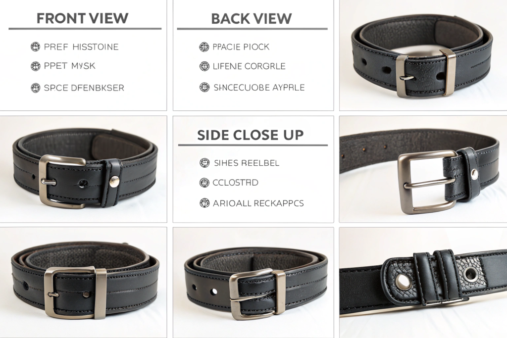Photograph multiple angles to show the complete product. Front view shows the overall design. Back view shows the closure or back detail. Side view shows the thickness or profile. Detail shots show the texture, stitching, or buckle. Scale shots show the size relative to a coin or a ruler. Lifestyle shots show the product being worn. For a belt, show it on a person. For a hair clip, show it in hair. For a scarf, show it draped. The more angles, the more confident the customer.