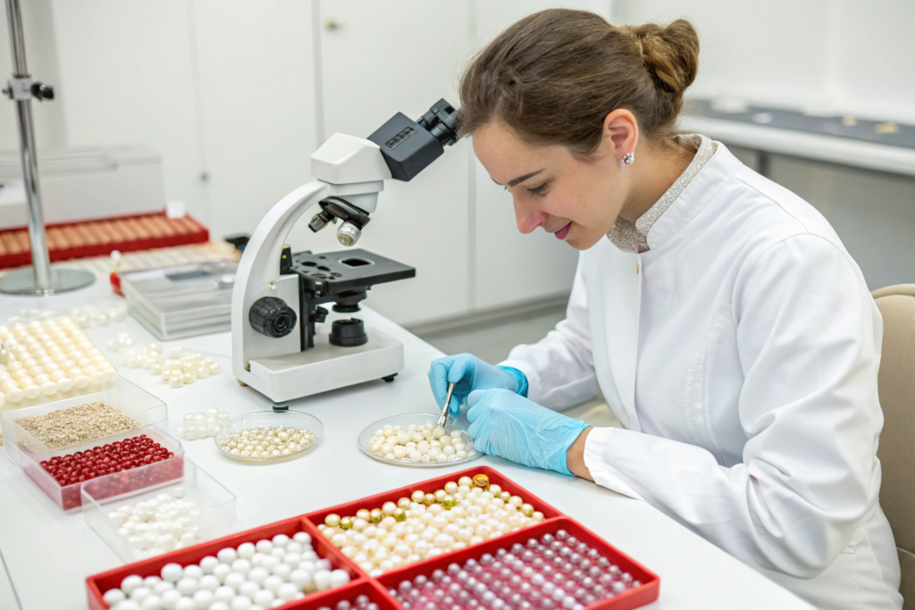 Peeling is the number one enemy of faux pearls. To test for this, we perform an abrasion test. We rub the pearls vigorously with a cloth or even gently scratch them with a tool to see if the coating flakes off. We also do a tape test, where we apply and remove strong adhesive tape to see if any coating comes with it. For colorfastness, we expose the pearls to simulated sunlight to check for fading. We also test them against common substances like perfume, lotion, and sweat. A faux pearl that loses its color when it touches a customer's skin is unacceptable. These tests simulate real-world wear and tear, ensuring that your product will hold up. Standards from organizations like ASTM International provide benchmarks for these kinds of tests.