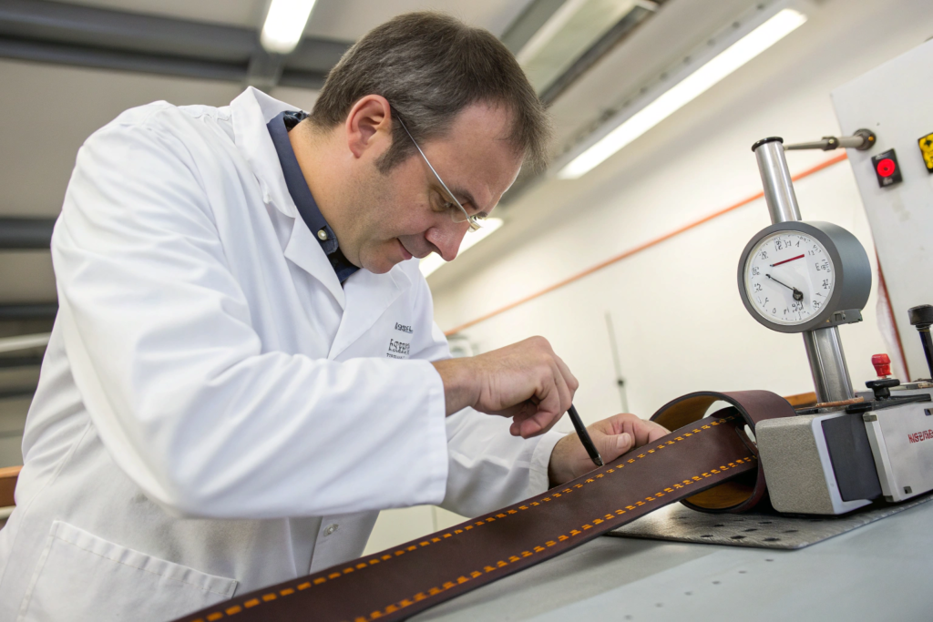 The simplest test is a pull test. Pull on the belt with your hands. Does the stitching stretch? Does it break? For a quantitative test, use a force gauge. Attach the belt to the gauge. Pull until the stitching fails. A good belt should withstand 50 pounds of force. For heavy-duty belts, 100 pounds. We perform pull tests on every batch.