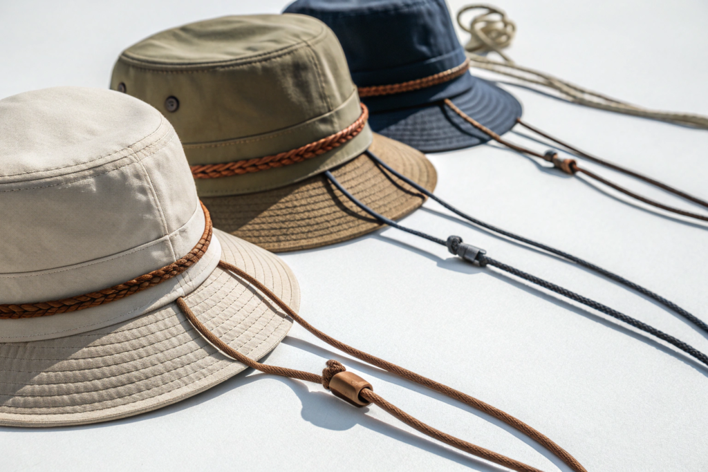I have manufactured over two million bucket hats in my career. I have sent them to surf shops in California, outdoor retailers in Colorado, and luxury department stores in London. For the first ten years, almost nobody asked about the chin strap. It was an afterthought. We used whatever black cord was cheapest.